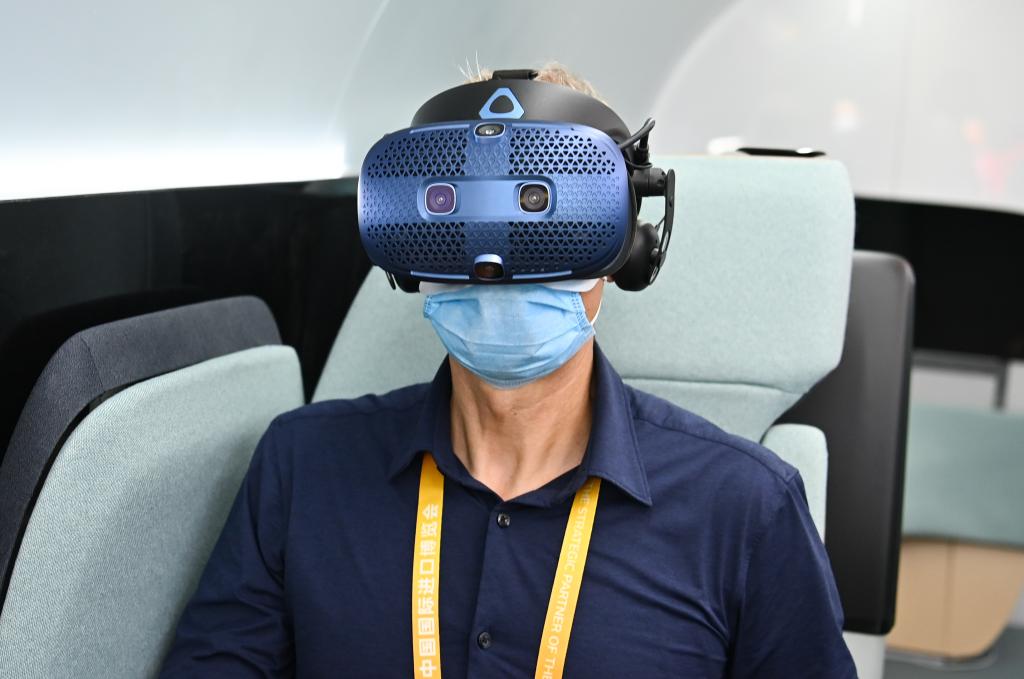 11月5日,参观者在第四届进博会汽车展区参与现场互动(新华社记者李响 摄)