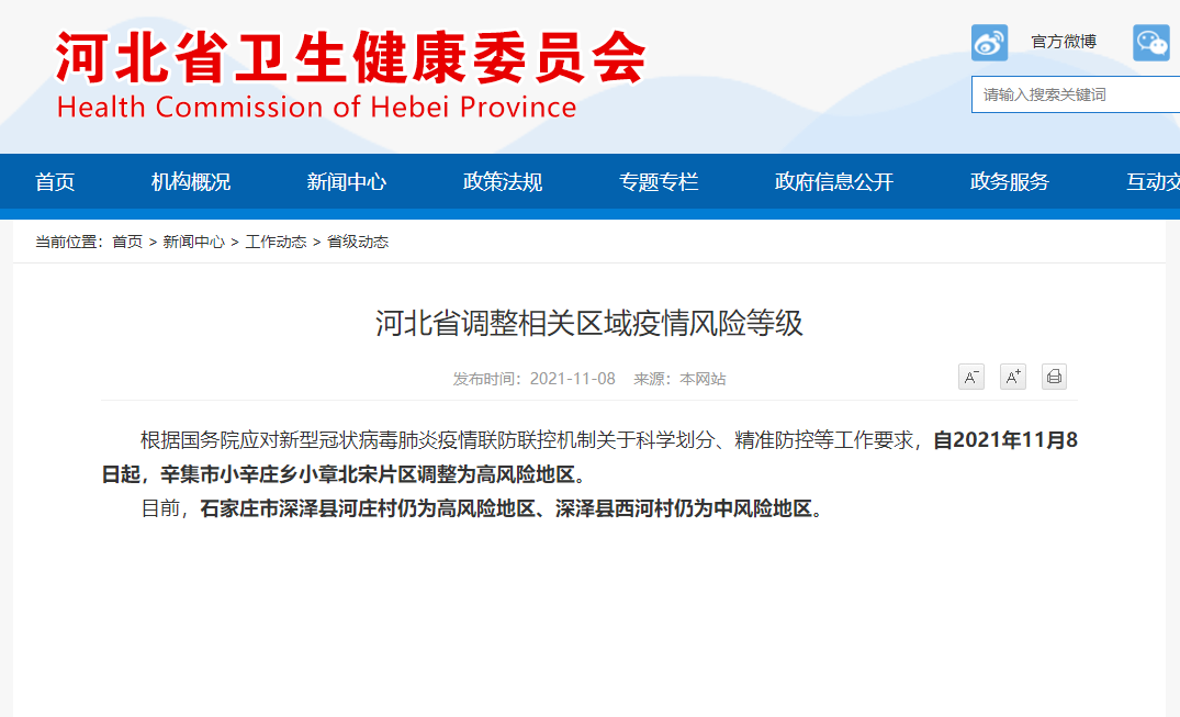 目前,石家庄市深泽县河庄村仍为高风险地区、深泽县西河村仍为中风险地区。