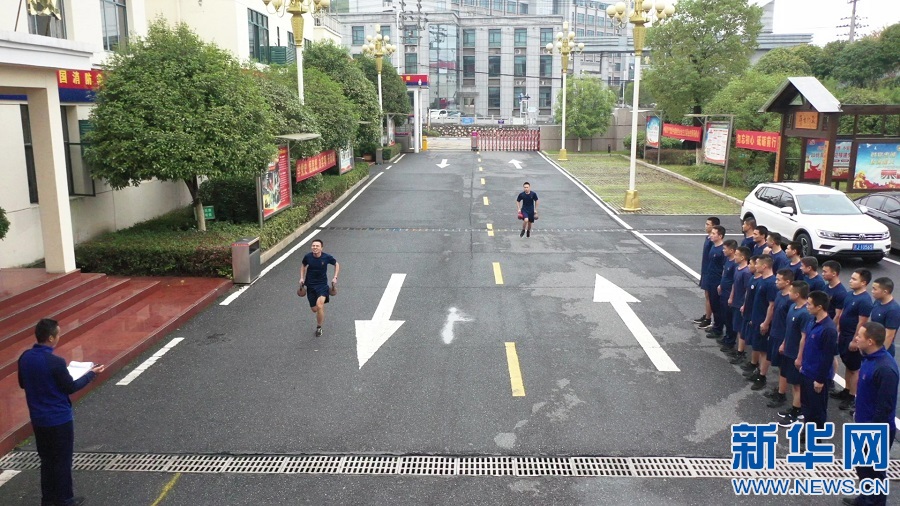 攀爬是消防员体能训练的项目之一,在紧张的灭火救灾过程中,这不仅是对消防员体能的考验,也是对他们心理素质的考验。图为黄乐喜和队友们正在进行攀爬训练。新华网发 王强 摄