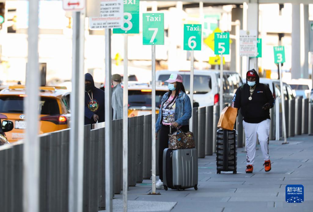11月8日,旅客在美国纽约肯尼迪国际机场乘坐出租车。