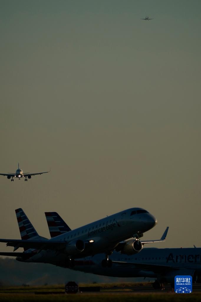 这是11月8日在美国弗吉尼亚州阿灵顿的里根国家机场拍摄的商业航班客机。