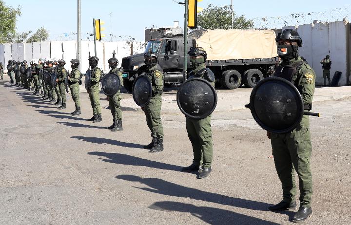 11月7日,防暴警察在伊拉克巴格达“绿区”附近警戒。(新华社发,哈利勒·达伍德摄)