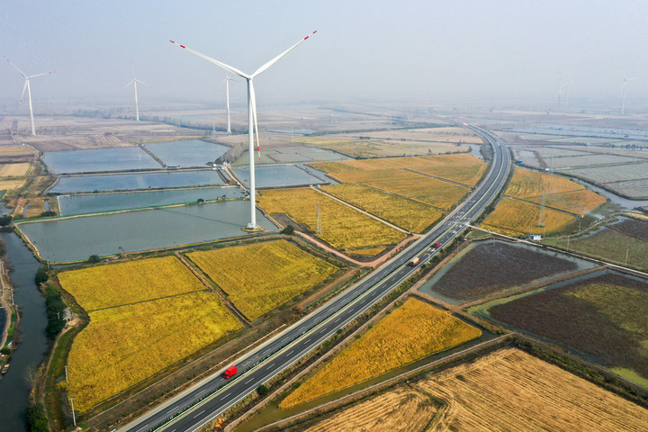 图为11月3日拍摄的江苏省扬州市宝应县鲁垛镇5.28万千伏安风力发电项目(无人机照片)。新华社记者 李博 摄