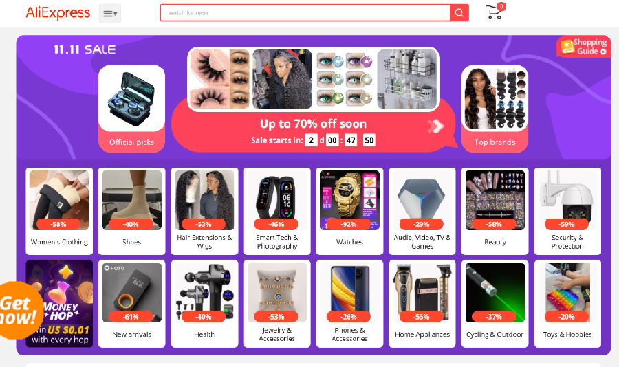面向海外市场的速卖通同步开启了“双11”促销季。(记者截图)