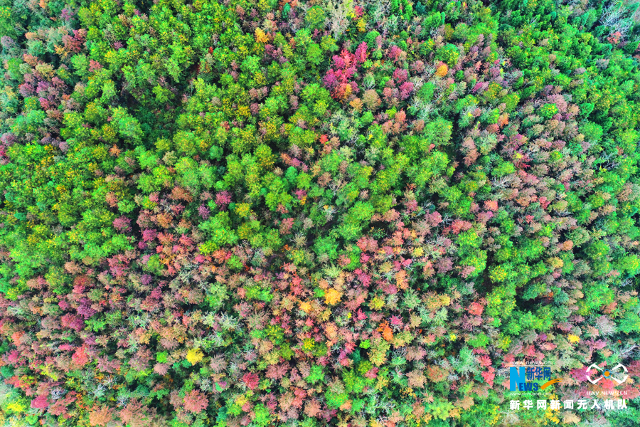 秋冬之交,层林尽染,游客置身其中,仿佛游走于画间。新华网发(陈碧生 摄)