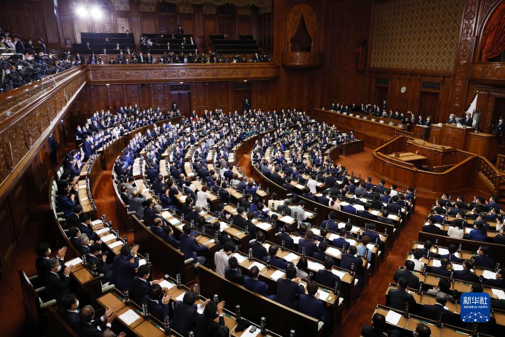 11月10日,议员在日本东京国会众议院出席会议。新华社/共同社