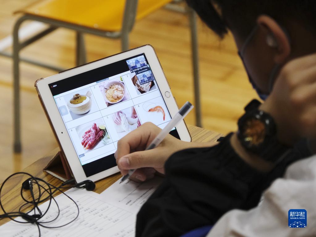 11月10日,在香港扶幼会则仁中心学校,香港中学生在网络直播课上回答姊妹学校深圳市坪山区光祖中学老师提出的问题。新华社记者 王申 摄