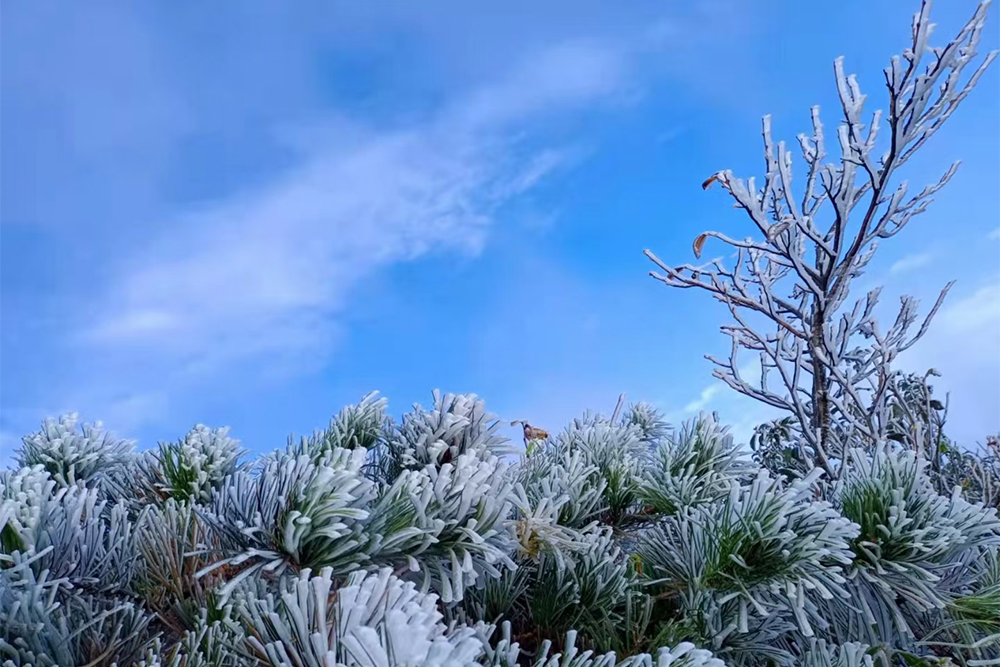 湖南莽山五指峰景区雾凇景观(景区供图)。新华网发