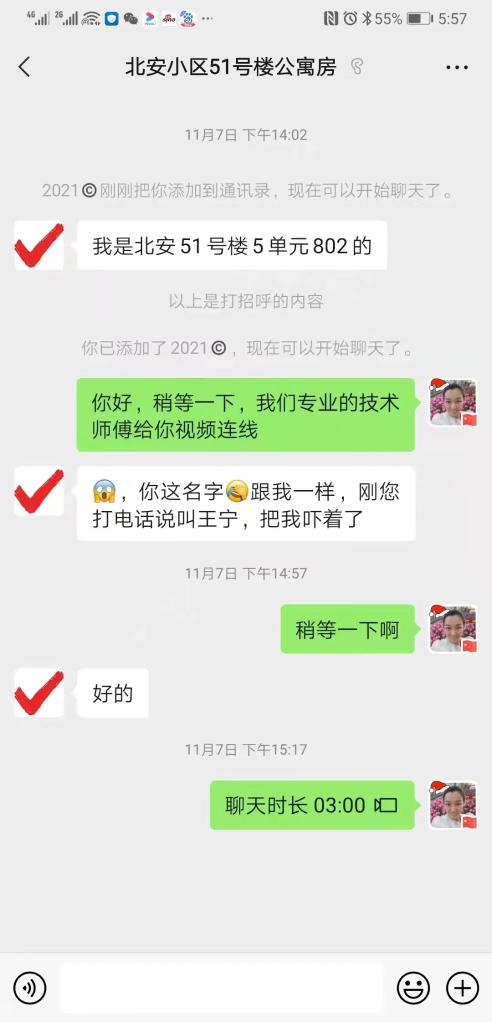 供热企业工作人员通过视频通话等方式远程协助居民解决用热小问题。(受访者供图)
