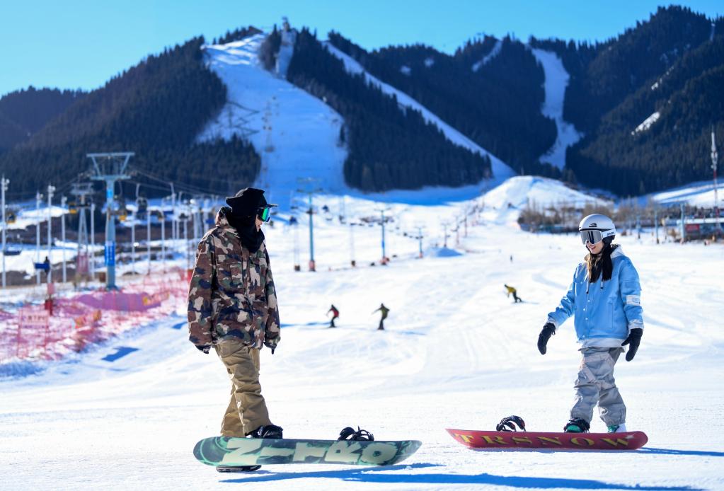 图为11月10日,滑雪爱好者在新疆丝绸之路国际度假区滑雪。新华社记者 王菲 摄