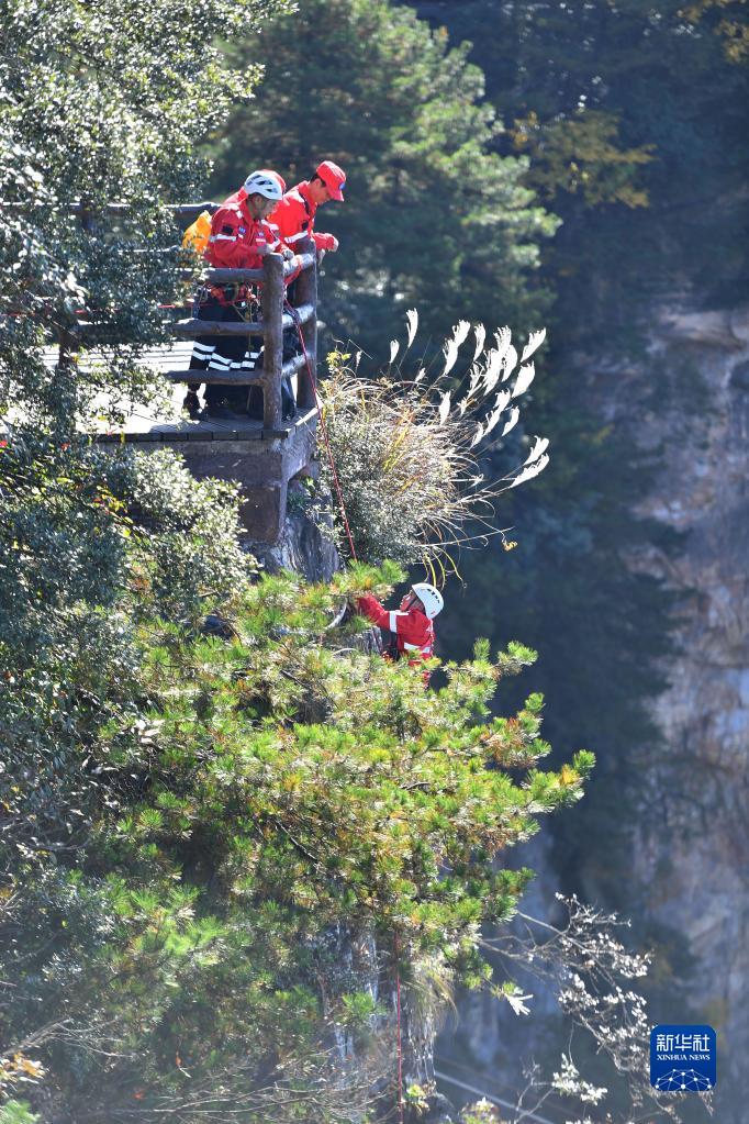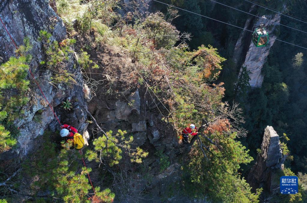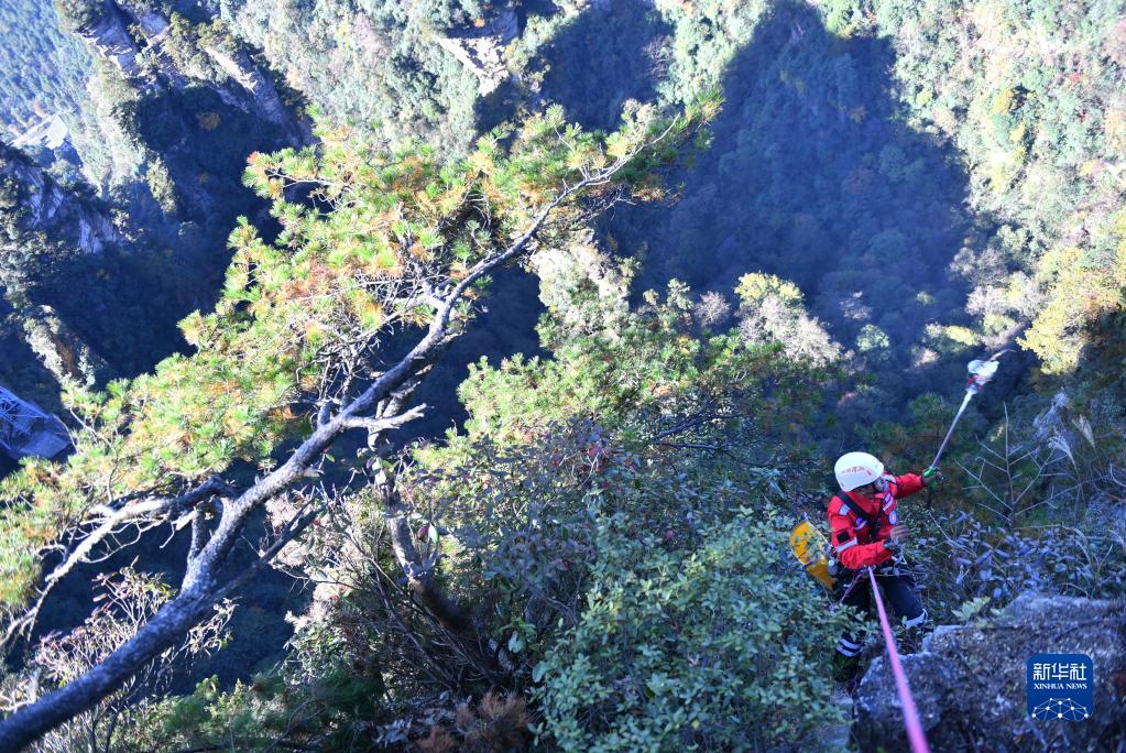 队员们一怕落石、二怕绳索摩擦。队长陈华杰说,首先,每周的定期训练是保障队员人身安全的重要措施;其次,实操中讲究胆大心细、沉着冷静。“我是本地人,对这片美丽的风景有感情。我希望通过自己的专长,呵护武陵源的生态环境。”陈华杰说。