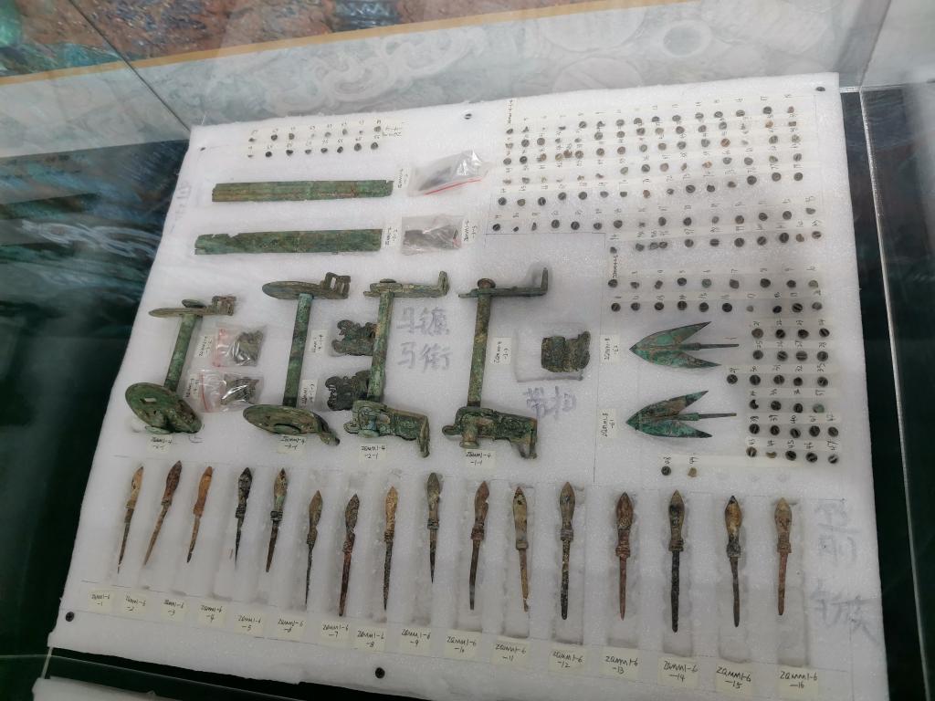 图为在庙山尖土墩墓中出土的部分青铜车马器。新华社记者冯源摄