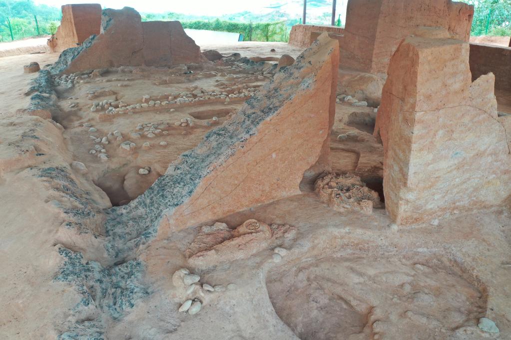 图为孟姜一号墓,出土了我国年代最早的“人字形”木椁。(受访对象供图)