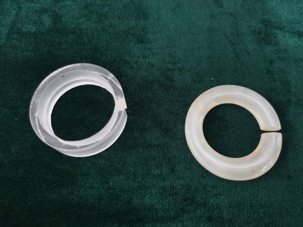 这是孟姜一号墓出土的部分玦。左为水晶玦,右为玉髓玦。新华社记者冯源摄