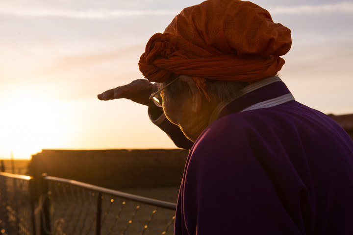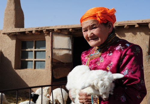 身穿紫色蒙古袍,头戴橘红色头巾,79岁的都贵玛坐在暖阳下,向记者缓缓讲起以前的故事。