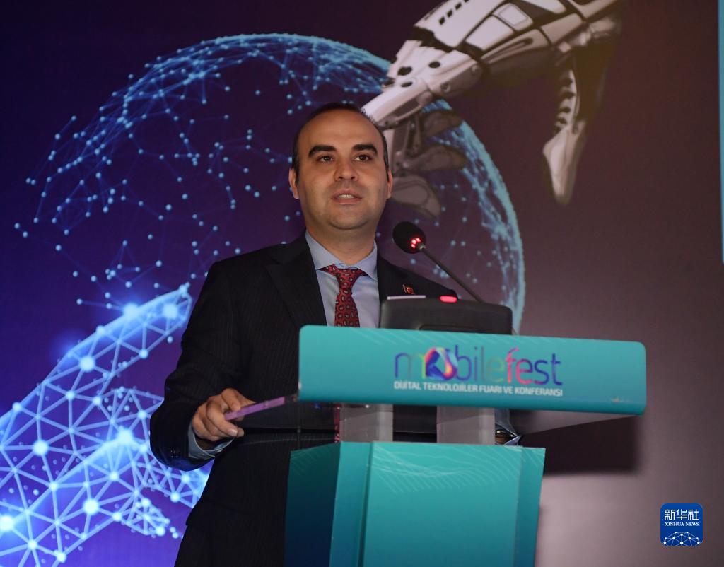 11月11日,土耳其工业和技术部副部长法提赫·卡吉尔在伊斯坦布尔举行的第二届土耳其“移动节”数字技术博览会开幕式上讲话。新华社记者沙达提摄