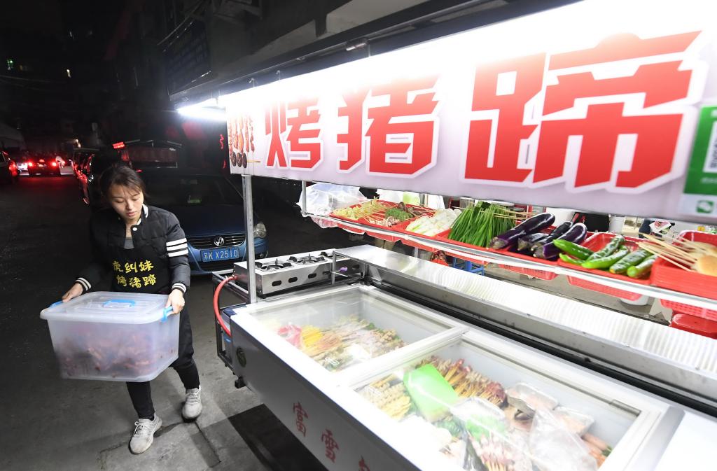 黄思林在进行夜市摆摊前的准备。新华社记者林善传 摄