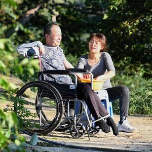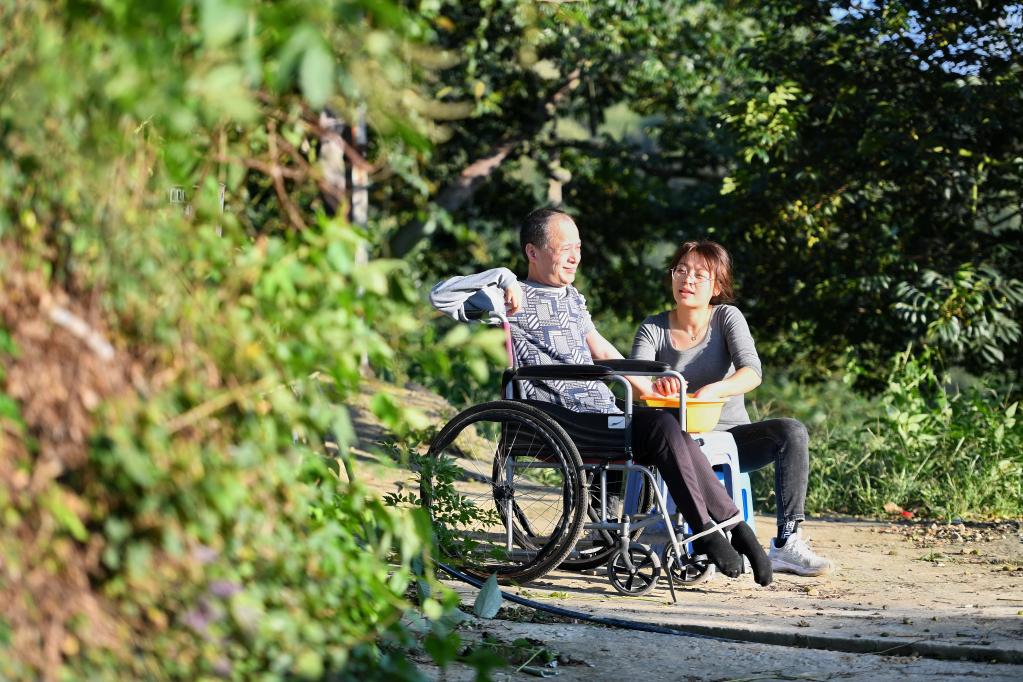 在福建省福州市闽侯县的家中,黄思林把父亲挪到轮椅上,带他享受冬日里的阳光。小院里,黄思林和父亲聊着天,远处,闽江波光粼粼;近处,铺满地面的茶油籽散发着阵阵清香。