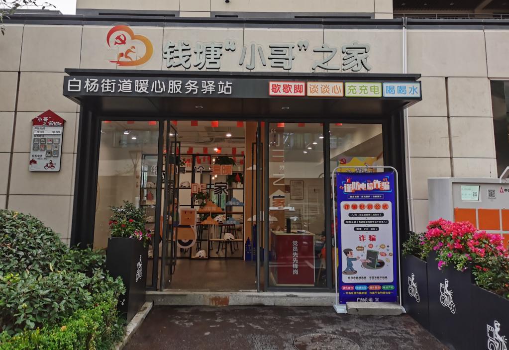 走进杭州市钱塘区白杨街道凌云社区“小哥”之家暖心服务驿站,记者看到100多平方米的驿站内,免费Wifi、饮水机、空调、沙发、微波炉、雨衣雨伞、应急药品等服务设施一应俱全,并布局有红色文化墙、乐活音影区、心理辅导室等多元空间,充分满足“小哥”们充电、饮食、休息、娱乐等各类需求。由于功能较为完善,每天中午12点到下午2点、下午4点到5点之间,都有20多名“小哥”前来这里休憩。