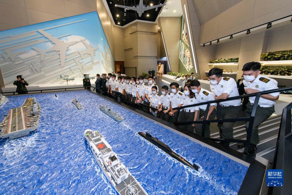 11月14日,团员在位于昂船洲军营的中国人民解放军驻香港部队展览中心参观。新华社发(香港特区政府新闻处供图)