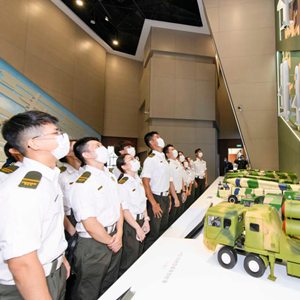 团员在驻港部队代表的带领下参观以“梦起东方”为主题的展览,观赏三个主题展厅和装备模型展示区内的展品,包括各式各样的图文展板、文物实物、场景雕塑、导览视频和解放军装备的模型。