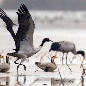 近日,位于贵州省威宁彝族回族苗族自治县的草海国家级自然保护区迎来越冬黑颈鹤。
