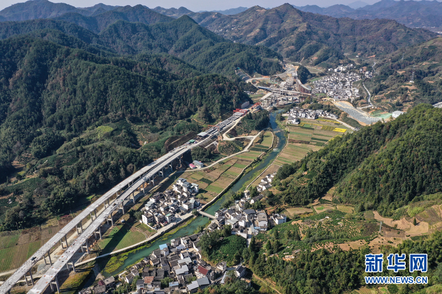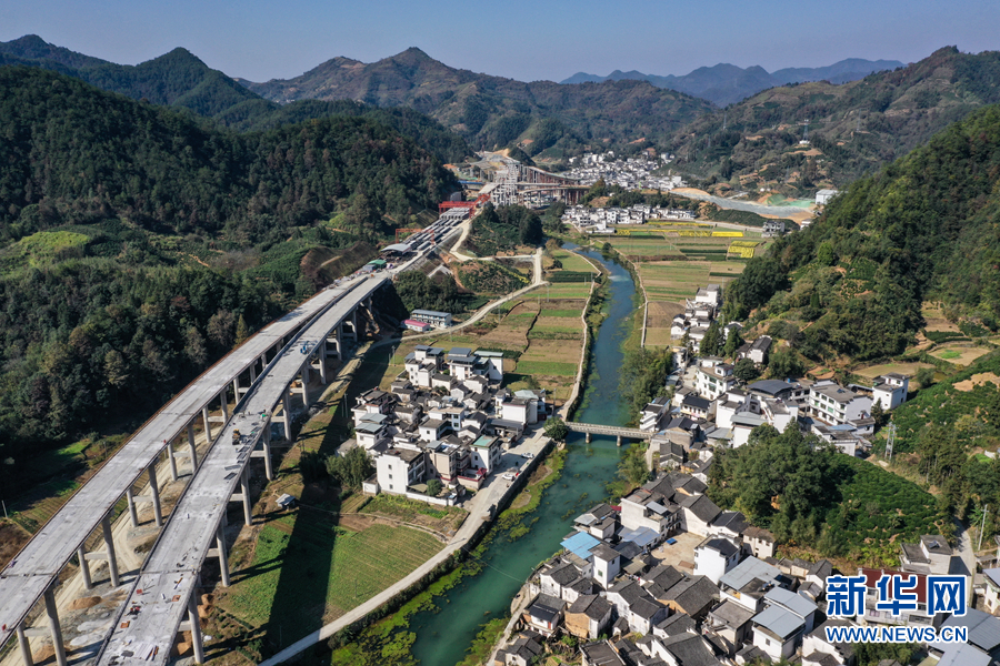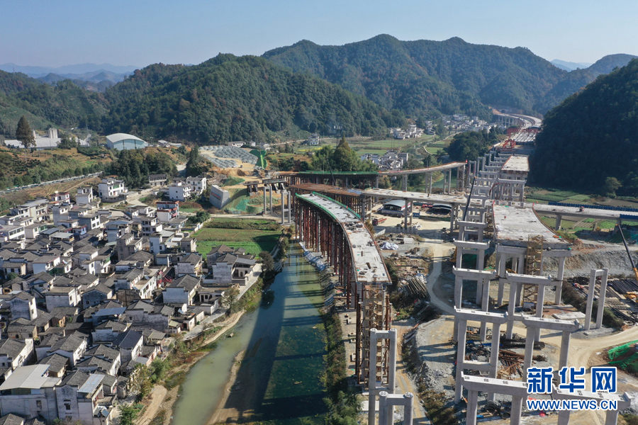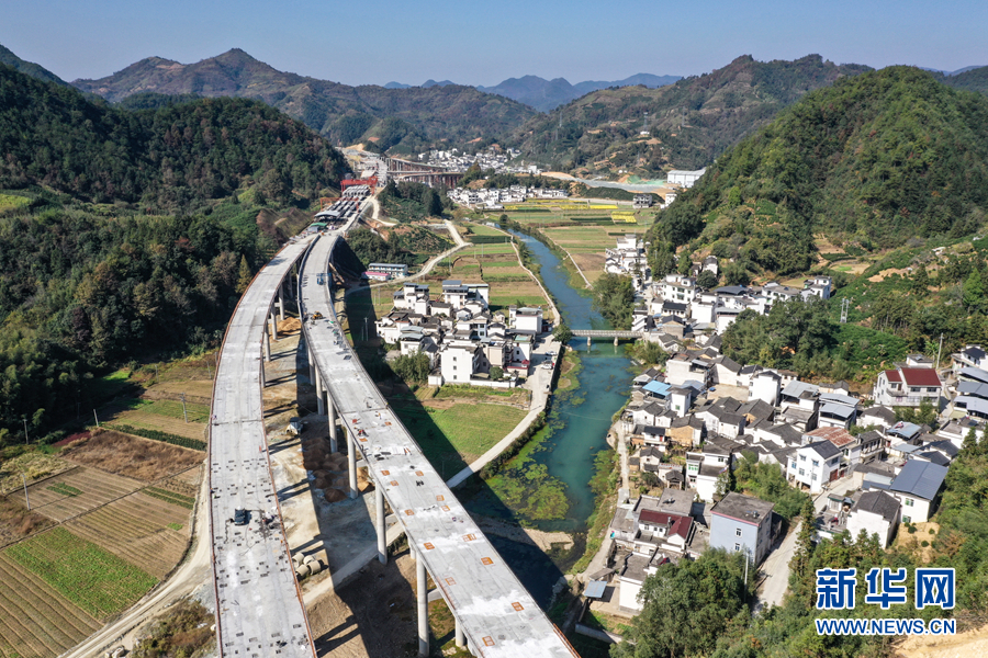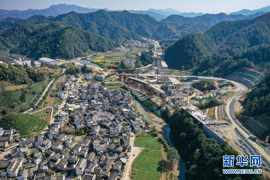 该高速通车后将有助于加快长三角区域交通与旅游的融合发展,目前工程进展顺利,计划将于2022年通车。新华网发(刘玉才 摄)
