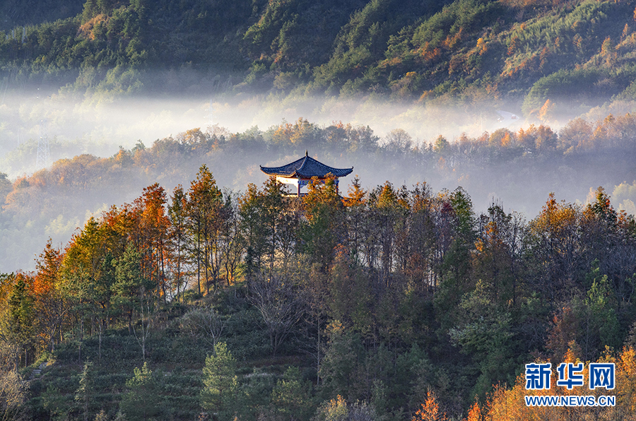 11月14日,在安徽省潜山市官庄镇拍摄的平流雾景观。