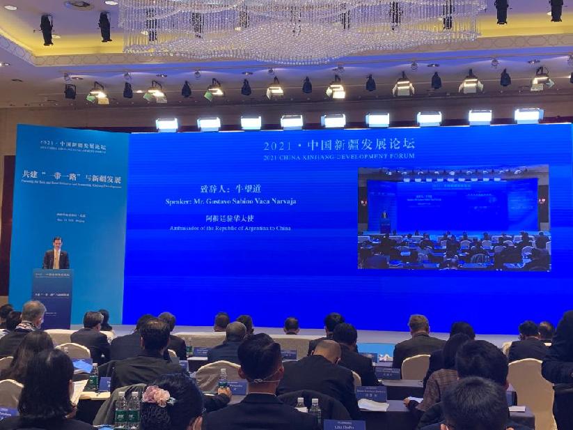 阿根廷驻华大使牛望道表示,“一带一路”倡议是一项前所未见的倡议,是真正促进国际合作的倡议,可以促进中国和世界互利共赢。在百年变局和世纪疫情叠加交织、国际和地区形势复杂深刻演变的背景下,这样一个推动融合、促进互利合作的倡议十分宝贵。“一带一路”倡议对阿根廷十分关键,新疆又地处十分重要的战略位置,阿根廷对此十分重视。