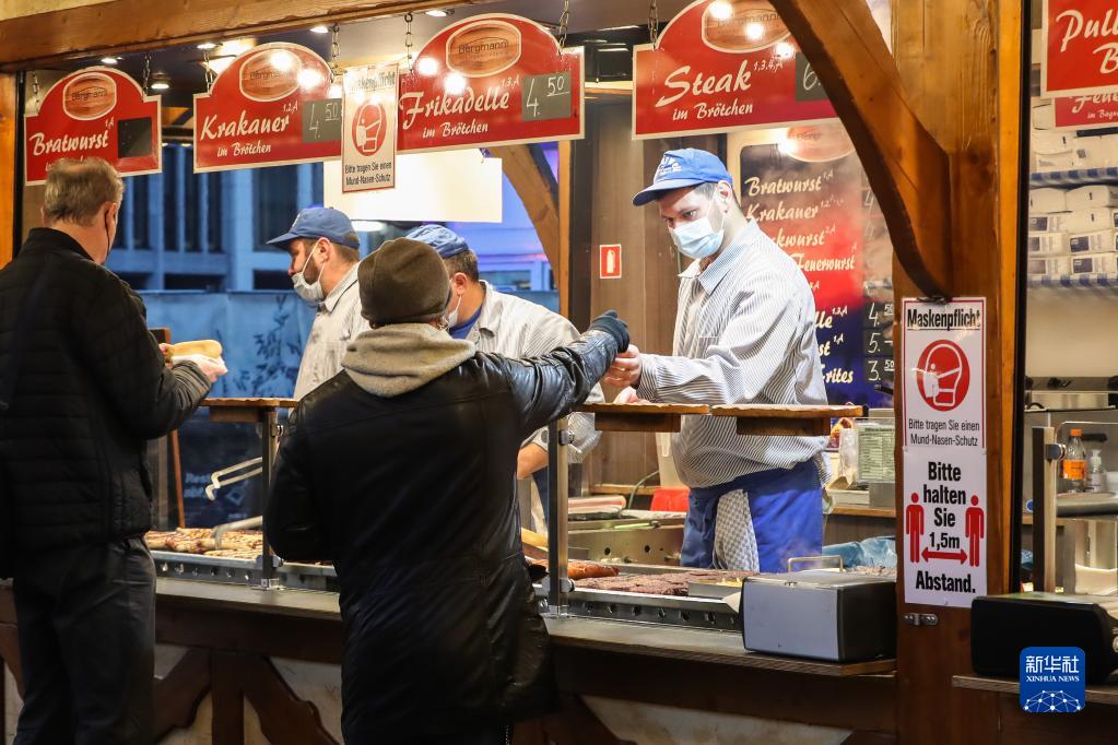 11月15日,人们在德国柏林的一处市场购买小吃。