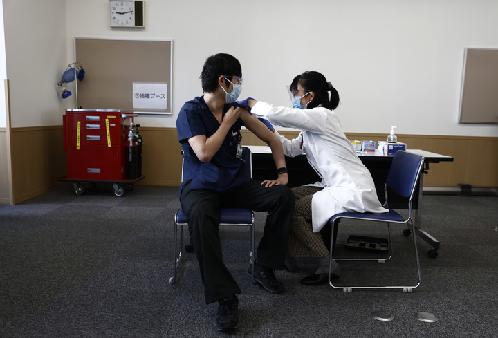 2月17日,医护人员在日本东京接种疫苗。新华社发(贝赫鲁兹·迈赫里摄)