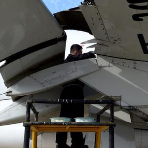 11月15日,在安徽省合肥新桥国际机场,东方航空技术有限公司安徽分公司的技术人员对飞机进行拆解。