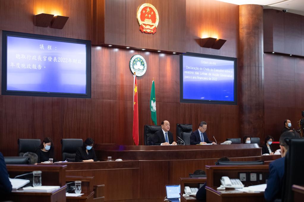 贺一诚在报告中回顾和总结了2021年的施政工作。他表示,过去一年来,在中央政府的大力支持以及广大居民齐心协力下,特区政府落实2021年施政的各项部署,统筹疫情防控与经济社会恢复工作,推进民生建设和各项改革发展举措,强化维护国家安全的执行机制。贯彻“爱国者治澳”根本原则,严格依照基本法和立法会选举制度规定,确保第七届立法会顺利产生,彰显了依法治澳的精神,延续了澳门各界爱国爱澳的光荣传统。澳门特区整体经济呈现波动中恢复、调整中向稳的发展态势,社会大局保持和谐稳定。