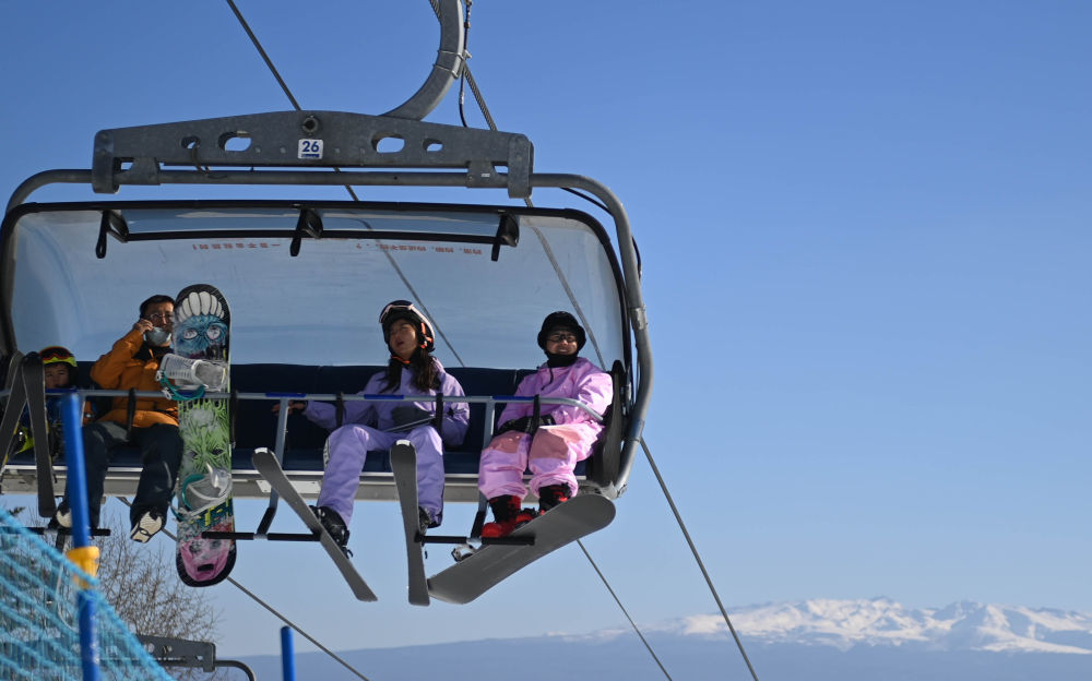 ↑滑雪爱好者乘坐长白山国际度假区滑雪场的缆车(11月15日摄)。新华社记者 颜麟蕴 摄