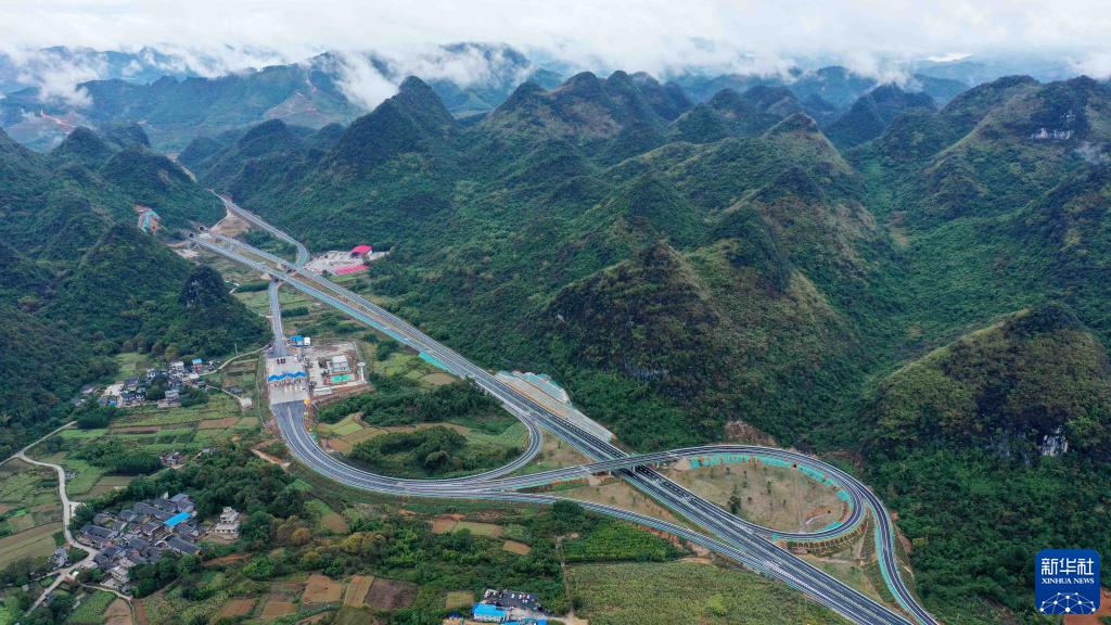 这是广西桂林至柳城高速公路融安县大良互通(11月17日摄,无人机照片)。