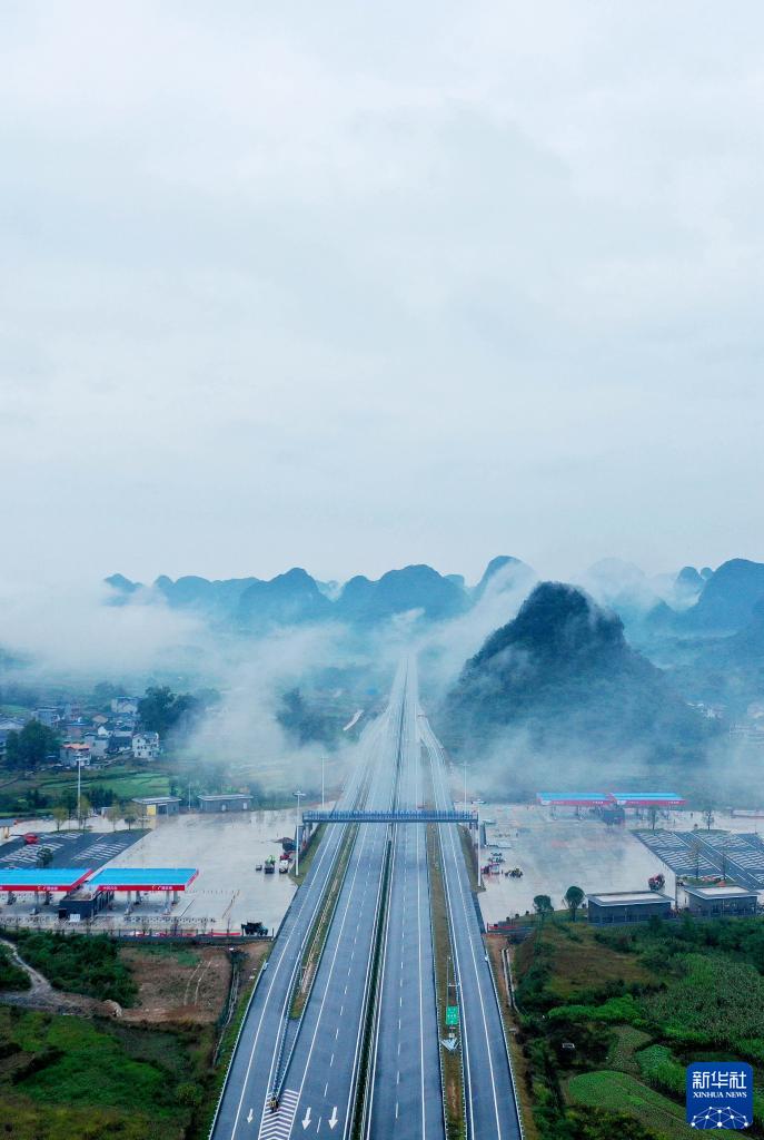 这是广西桂林至柳城高速公路融安县境内路段(11月16日摄,无人机照片)。