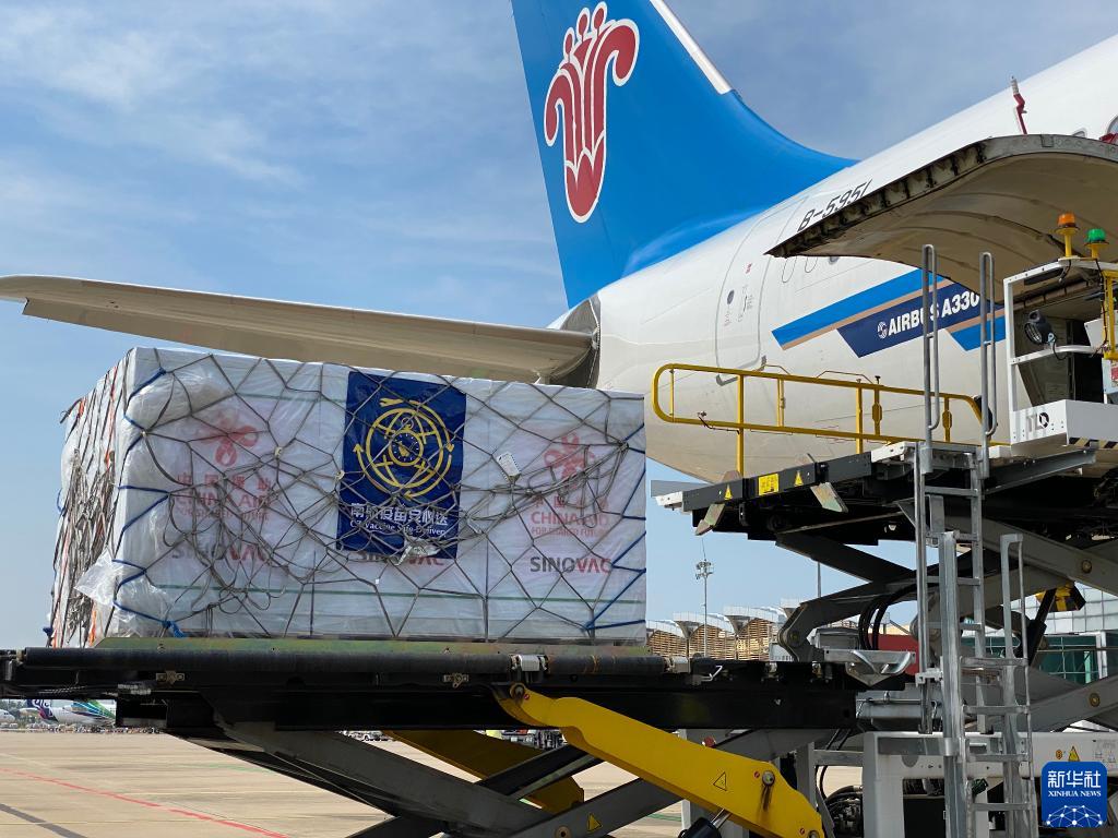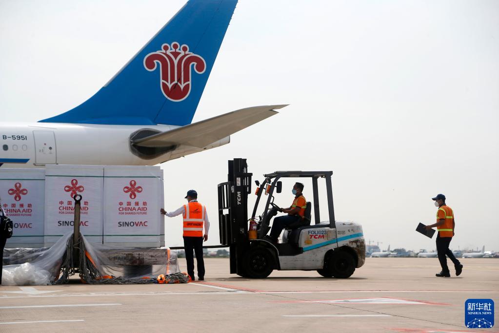 11月17日,中国援柬第七批新冠疫苗抵达柬埔寨金边国际机场。新华社发(罗军摄)