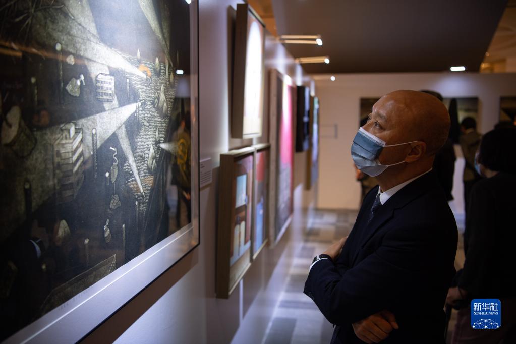 11月17日,嘉宾在“明日可及——2021大湾区青年艺术家计划”获奖作品展上参观。新华社记者 张金加 摄