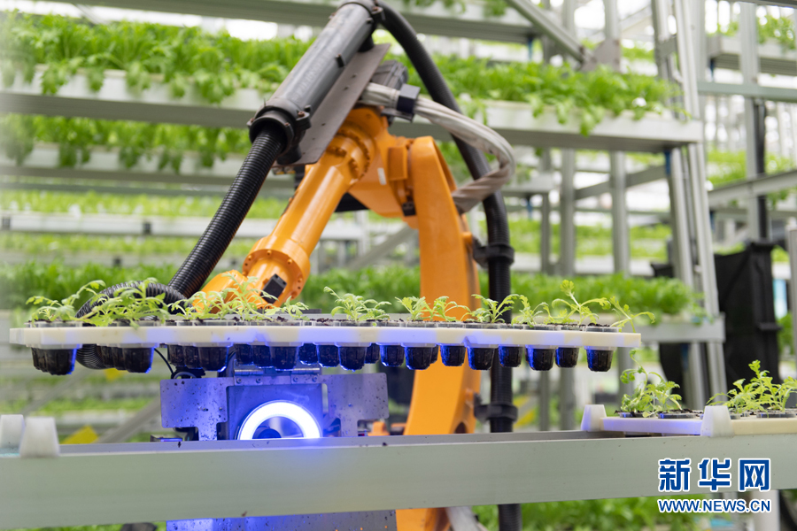 这样种菜方式不仅节约了耕地,还大大降低了人力投入。从“一粒种子到一颗菜”实现全程无人化作业,研制了无人化潮汐式育苗系统、温室作业机器人、蔬菜移栽定植线、蔬菜智能收割线、分光式立体栽培系统、温室智能物流系统等数字化装备,通过智能管理云平台,实现设备系统协同交互作业、24小时连续标准作业。蔬菜施多少肥料,一切均以智能化计算和管控,具体农活则由机器人承包,人只需定期检查设备运行情况。
