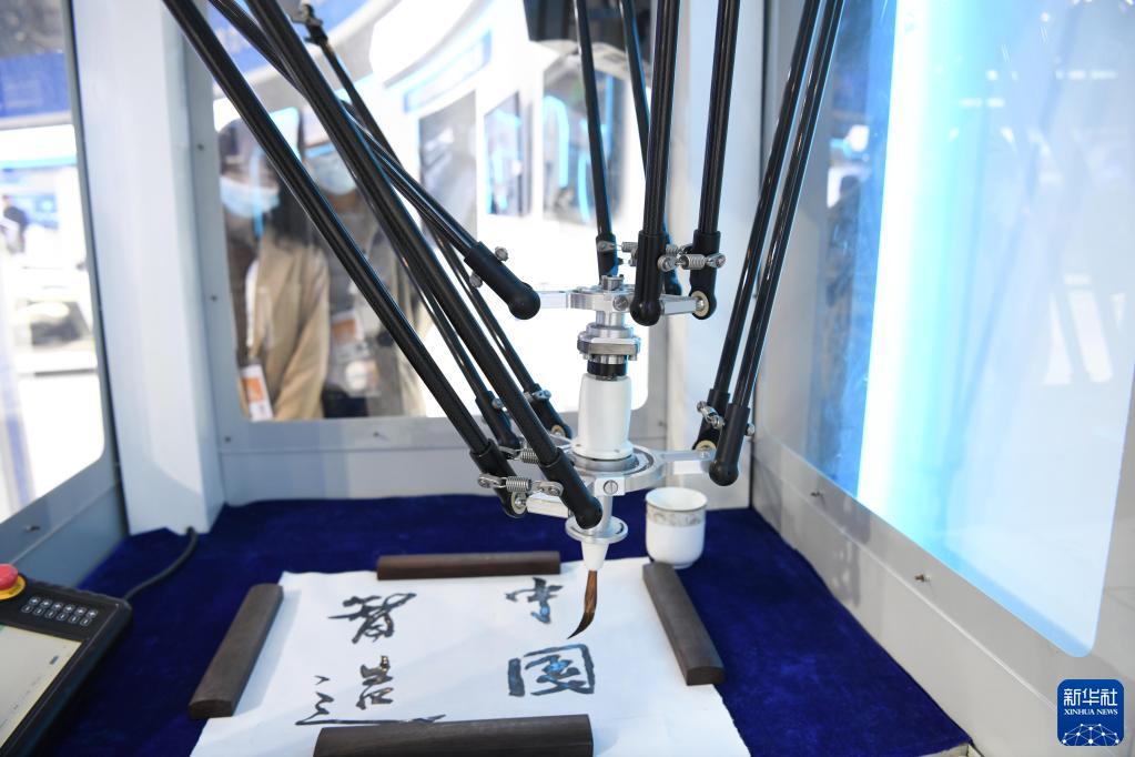 11月19日拍摄的2021世界制造业大会上展出的“六自由度并联机器人”。新华社记者 张端 摄