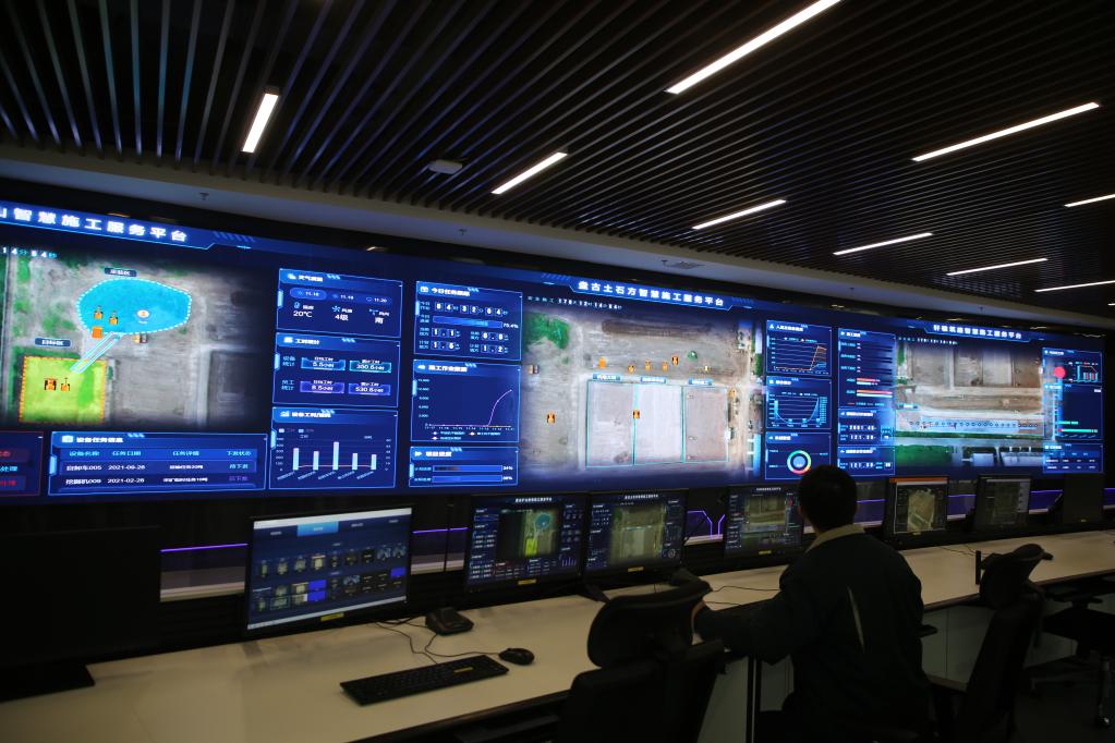 11月19日,山推工程机械股份有限公司工作人员通过智慧施工服务平台监测工程机械运行情况。(图片由济宁高新区管委会提供)
