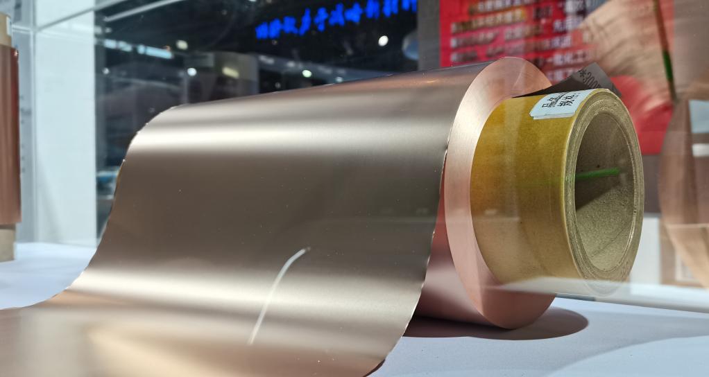 铜陵有色铜冠铜箔有限公司展出的铜箔。新华社记者胡锐 摄
