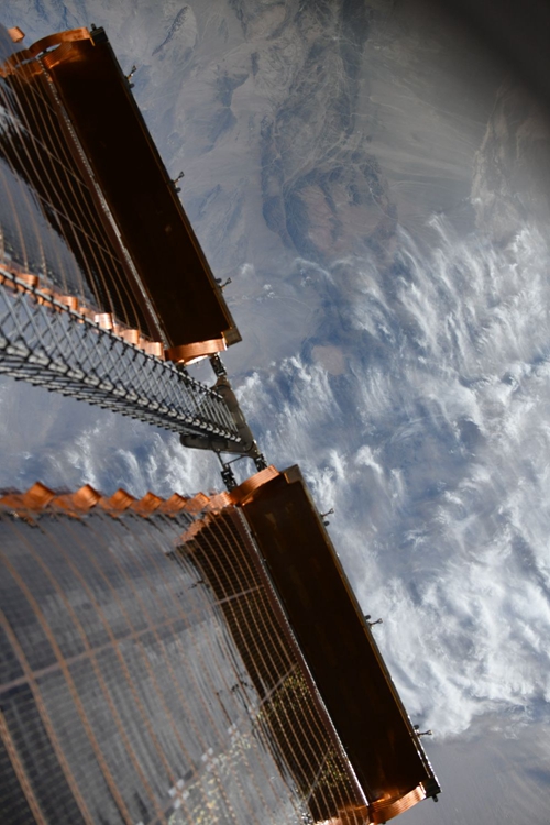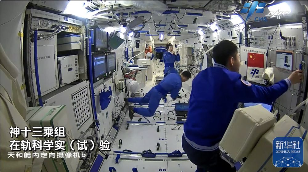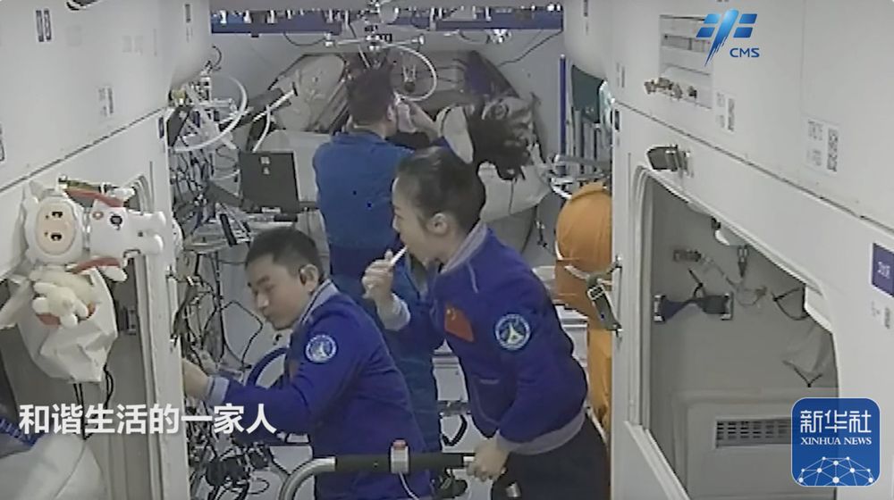 航天员王亚平(右)结束出舱任务的画面。郭中正 摄