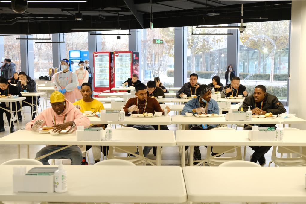 11月21日,参加测试的人员在北京冬奥村(冬残奥村)运动员餐厅用餐。