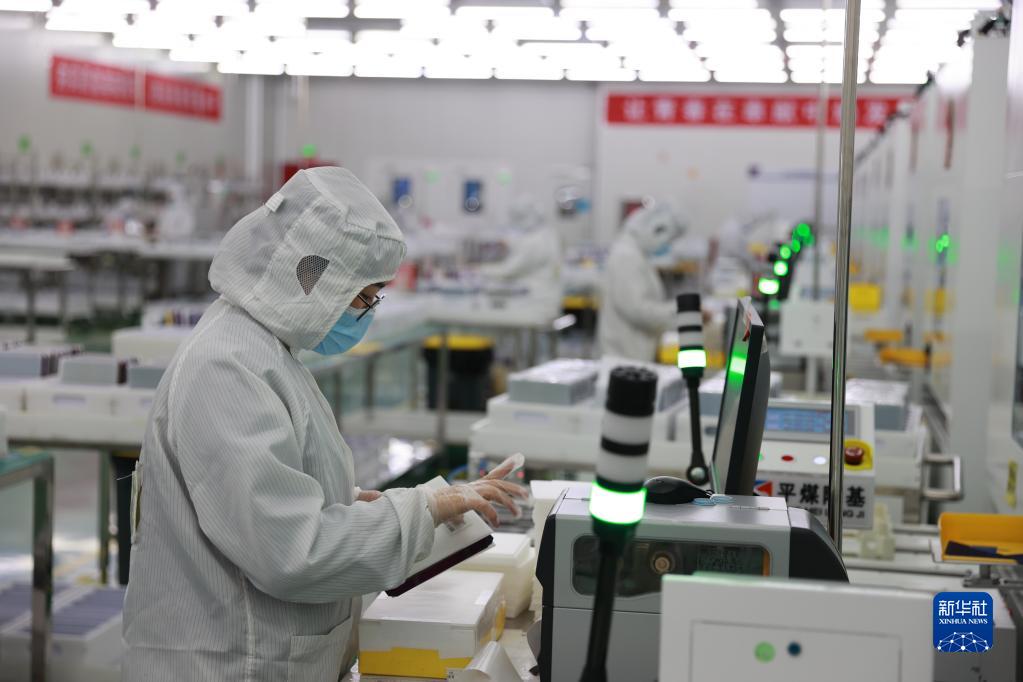 平煤神马集团隆基公司工人在生产车间作业(2021年10月14日摄)。新华社发