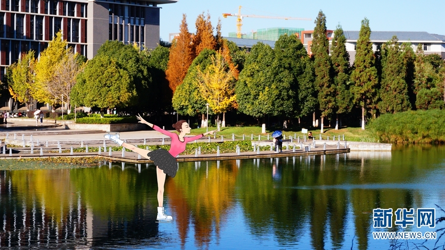 进入冬季以来,天气寒冷,人们的户外运动热情有所下降。为鼓励学生们走出宿舍、参与到冬季运动的热潮中,云南师范大学的师生们以“手绘+实景”的形式,制作了一组“冬运会”主题创意图片。在南湖、银杏道、图书馆等校园美景中,“运动员”们朝气蓬勃地进行着篮球、足球、游泳、滑雪等运动,萌趣十足。图为在一片银杏叶上展现高超滑雪技巧的“运动员”。新华网发(云南师范大学 供图)