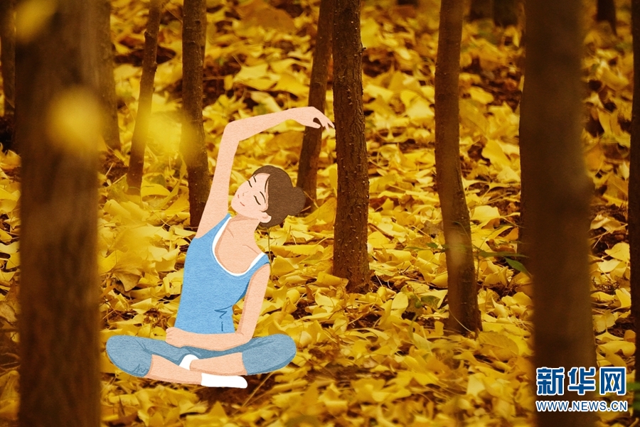 银杏林里安安静静地练瑜伽也是极好的。新华网发(云南师范大学 供图)