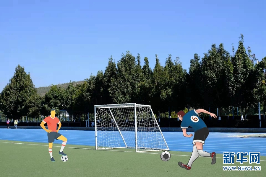 踢足球。新华网发(云南师范大学 供图)