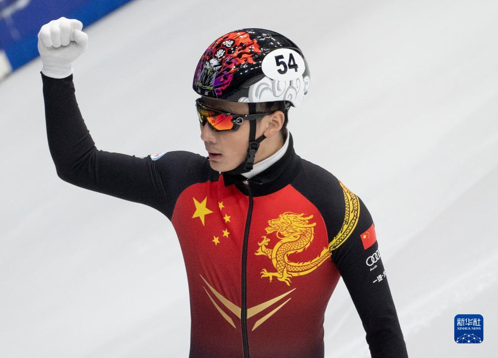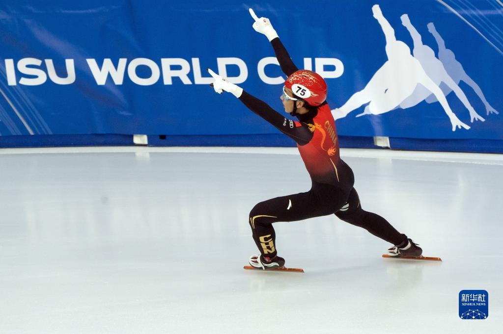 11月20日,任子威在比赛后庆祝。当日,在匈牙利德布勒森举行的国际滑联短道速滑世界杯匈牙利站男子1500米A组决赛中,中国队选手任子威以2分12秒910的成绩夺得冠军。新华社发(弗尔季·奥蒂洛 摄)
