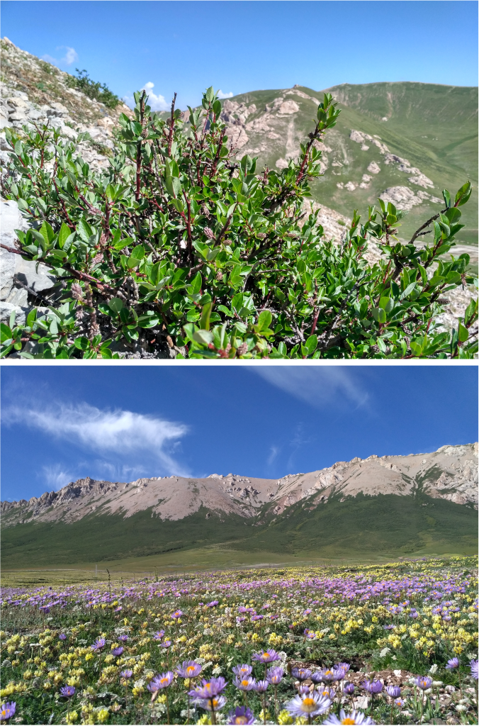 青藏高原山生柳灌木(上)和灌木线(下)景观(中科院青藏高原所供图)